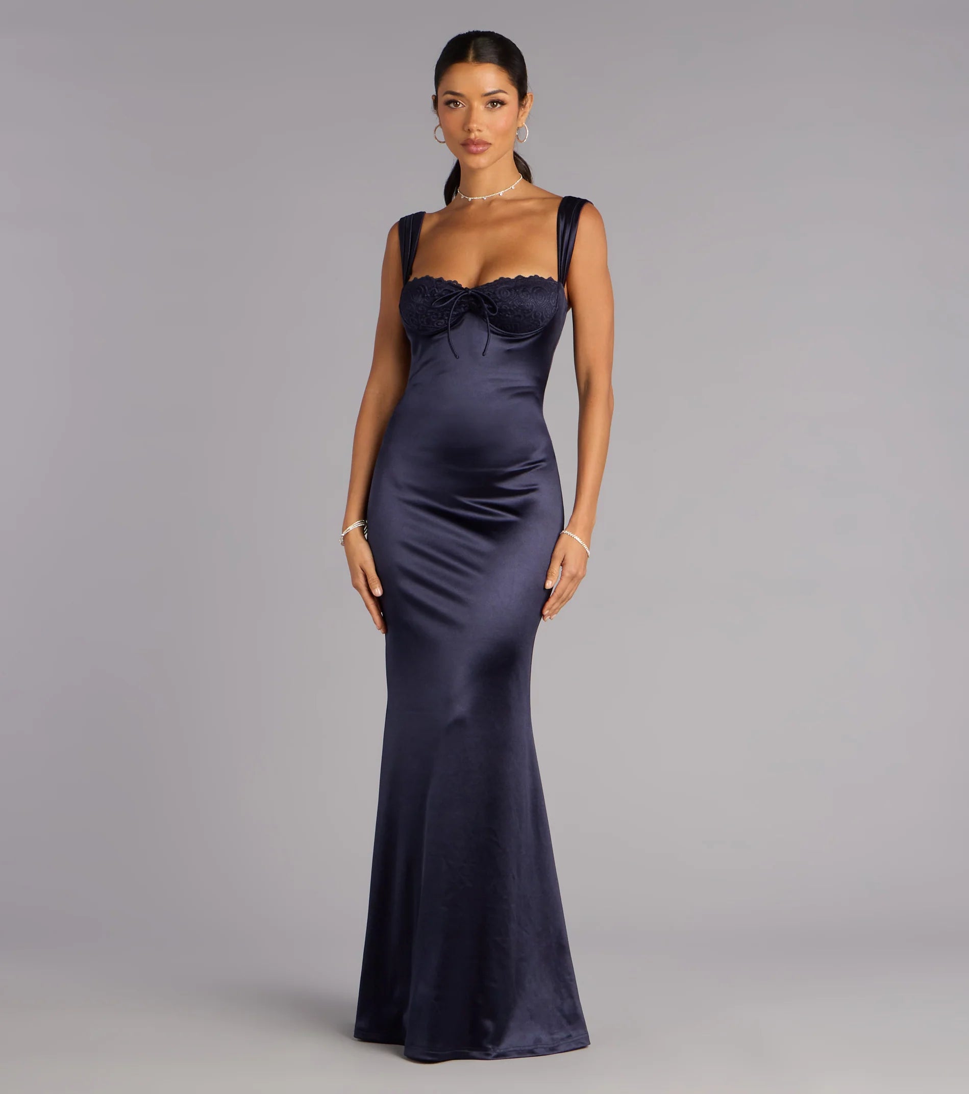 Elegant, sculpted, and made for the moments that matter, the Maryanne formal gown glides in smooth satin that hugs every curve. The lace underwire bust adds a touch of couture romance, while the mermaid floor-length silhouette creates a sleek, unforgettable finish worthy of any spotlight-worthy occasion.